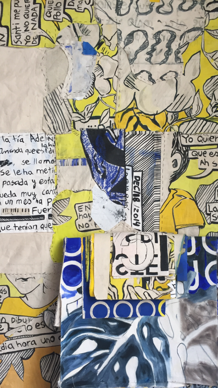 La obra reúne telas pintadas a partir de diarios que consignan diálogos de distintas personas alrededor del conflicto Colombiano. Son telas pintadas en ambos lados, fragmentadas y cosidas a mano en colaboración con otros, aludiendo a una experiencia de vida y tejido social que ha sido fragmentado debido a unos sucesos históricos. Este tejido se sana a través de la costura de varios pedazos dispersos. La obra tiene escala humana y se niega a fijarse en una sola imagen pues muta según el contexto expositivo. Como con la realidad, solo se ve una serie de capas de fragmentos, no la totalidad, construyendo una narrativa no lineal ni codificada.