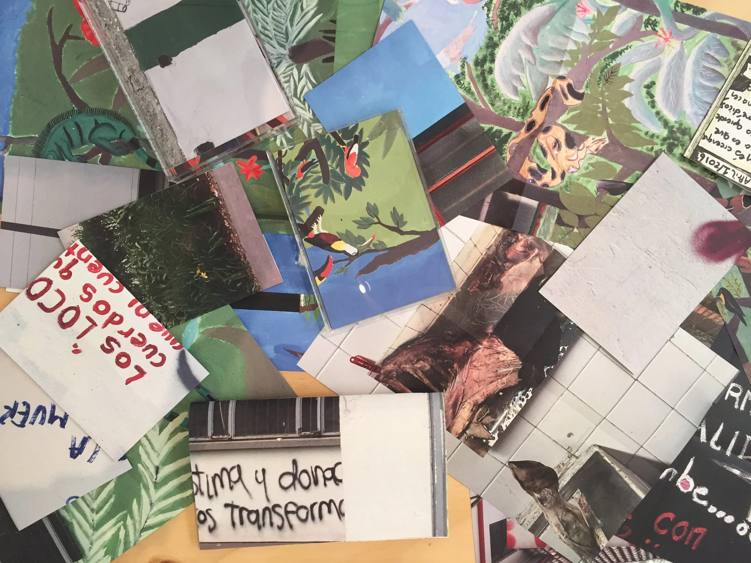 Artist Book consisting of loose foldouts featuring photos taken at the National University of Colombia in Bogotá between the years 2014 and 2016. These appropriated “public” words or images, which were neither close by nor related to each other, are re-contextualized on both sides of the fold out, confronting or continuing each other, acquiring new meaning in order to make a statement, an observation or ask a question out loud.
