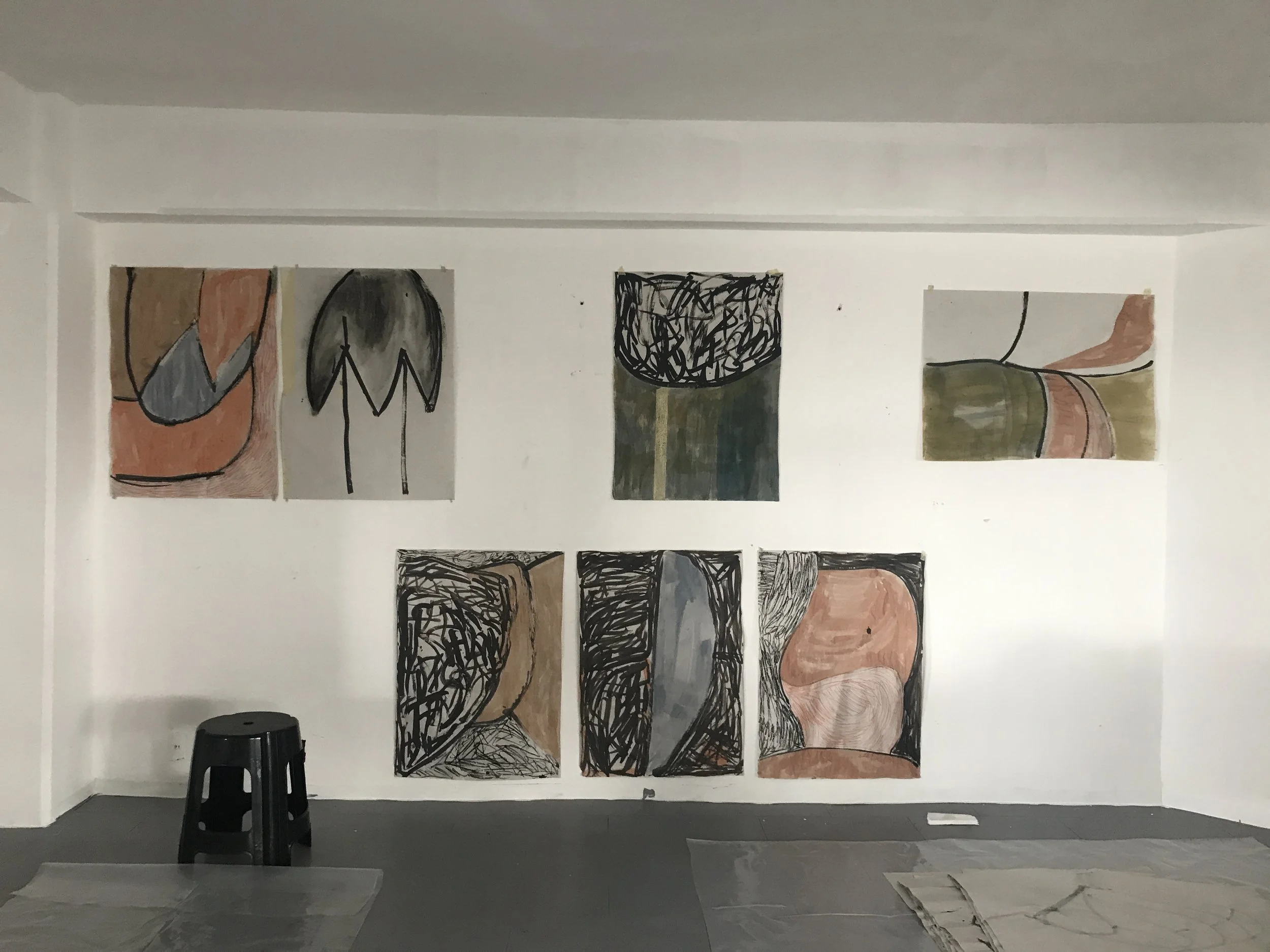 Series developed on the traditional paper produced and used in Mexico for everyday life activities, such as wrapping tortillas and tacos on the street, to printing announcements. “La esquina de la espera” ( the waiting corner) is the commercial street close to the studio in the neighbourhood of La Merced where they were made. The name was announced over the speakers countless times a day. The drawings are inspired by a trip to el Templo de San Lorenzo in the centro histórico, where Mathias Goeritz designed the stained glass windows, and where further developed over countless walks around this area of the city.